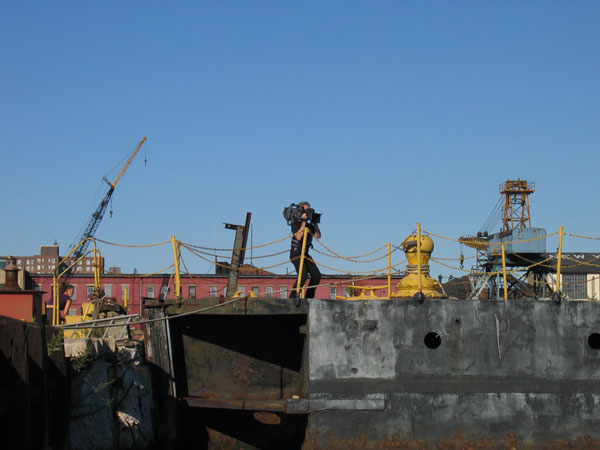 In the Erie Basin, Red Hook's harbor within a harbor, John Gladsky works aboard the Ovus, his salvage vessel. His arms are as thick as the steel cables dangling from the mighty crane he uses to lift wrecked vessels from the harbor floor. The second generation son of Polish immigrants who passed through Ellis Island only a few kilometers from where he is now docked, Gladsky points to a moldering pile of old mattresses on the deck. "I collect those," he says. "Sometimes we stuff them into the holes to keep the wrecks afloat after we pull them up."