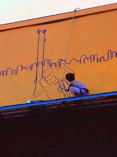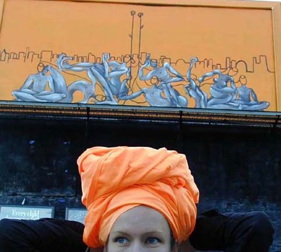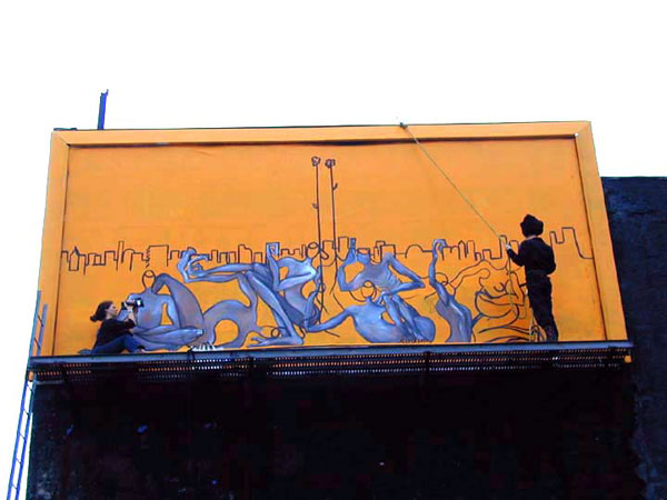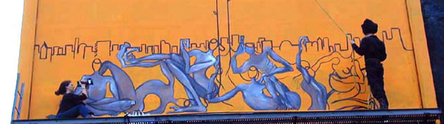 Artists and musicians create a mural as an outlet for hope one month after 9/11.